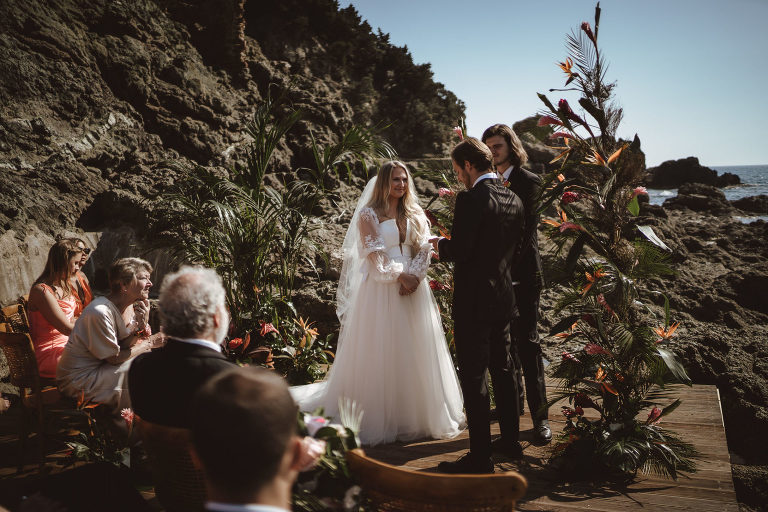 For Jessica and Zane an intimate destination wedding by the sea was exactly what they had in mind so they chose to have their ceremony on the rocks by the sea, surrounded by the sound of the waves and the warmth of the sun. It was a truly magical moment, made all the more special by the fact that they were surrounded by just a few close friends and family.