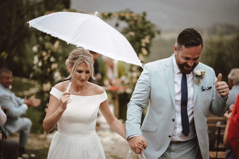 As they exchanged vows, the rain picked up, but it only seemed to bring them closer together. They held hands tightly and looked at each other with such adoration, it was clear that this was the happiest day of their lives.