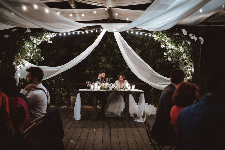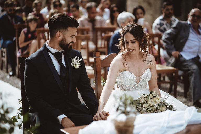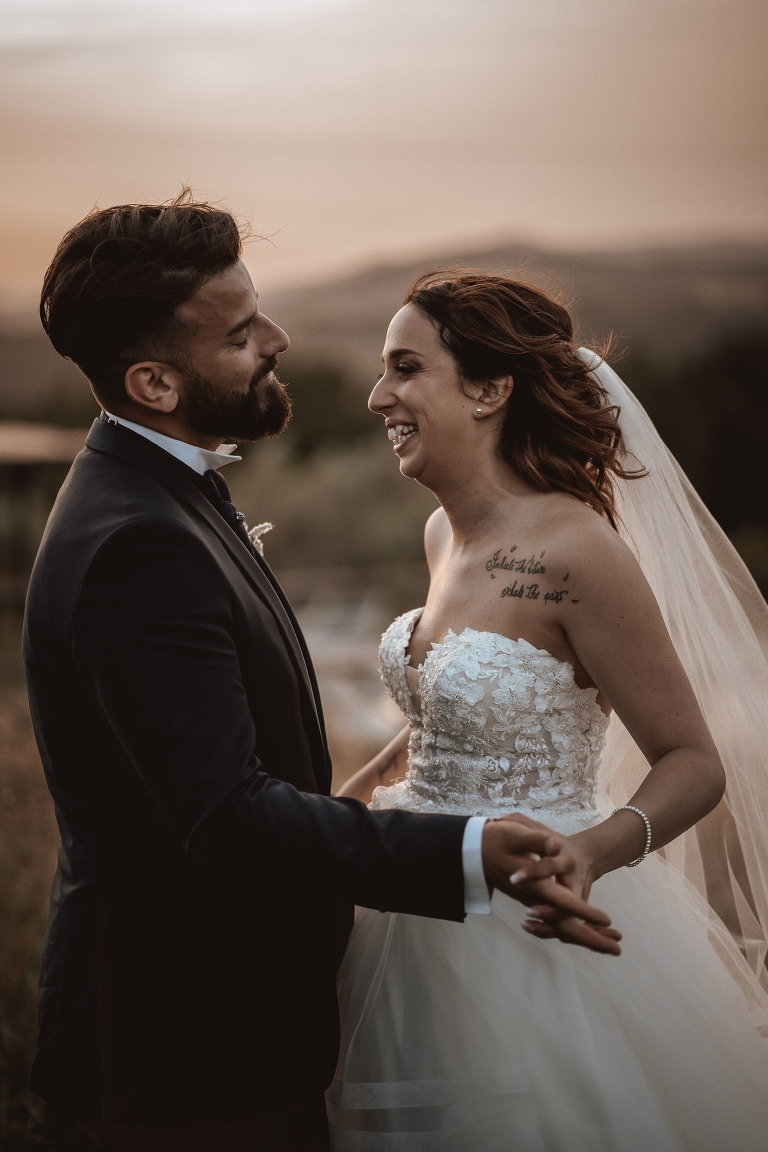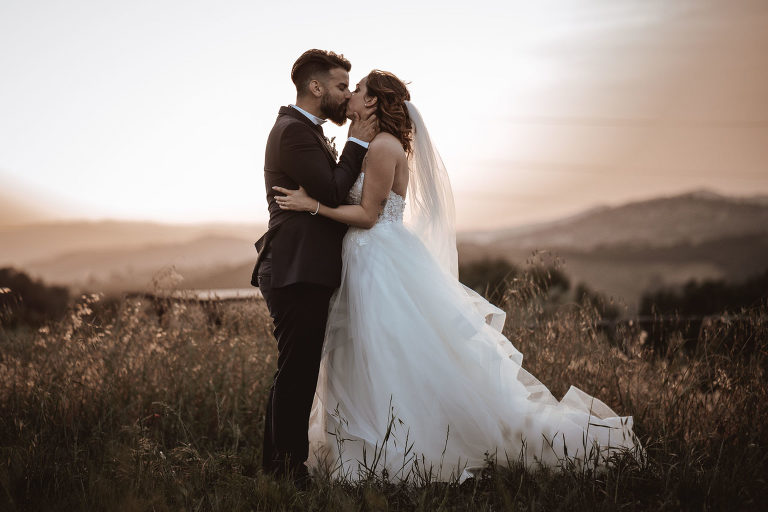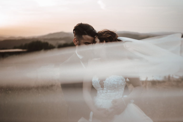 The farmhouse’s rustic charm and natural beauty were the perfect background and created a beautiful contrast to the grandeur of the abbey. The picturesque landscape of Tuscany, the golden hour light and their love made for an unforgettable and emotional wedding.