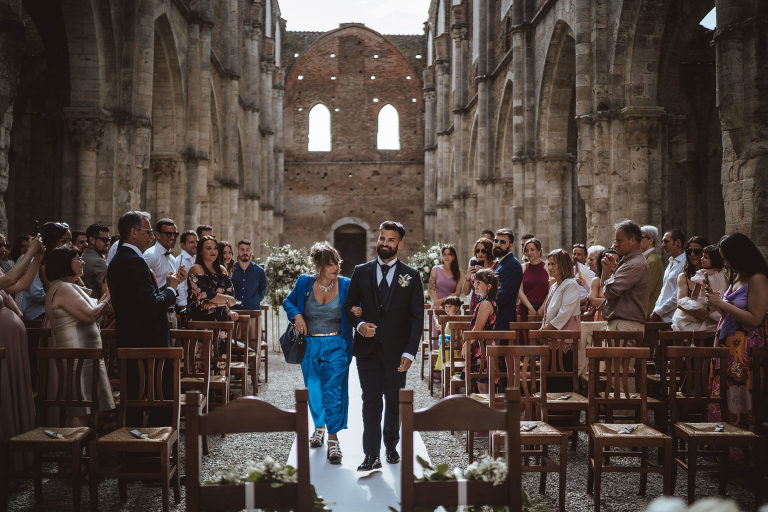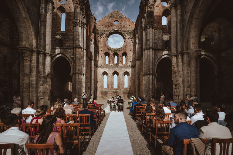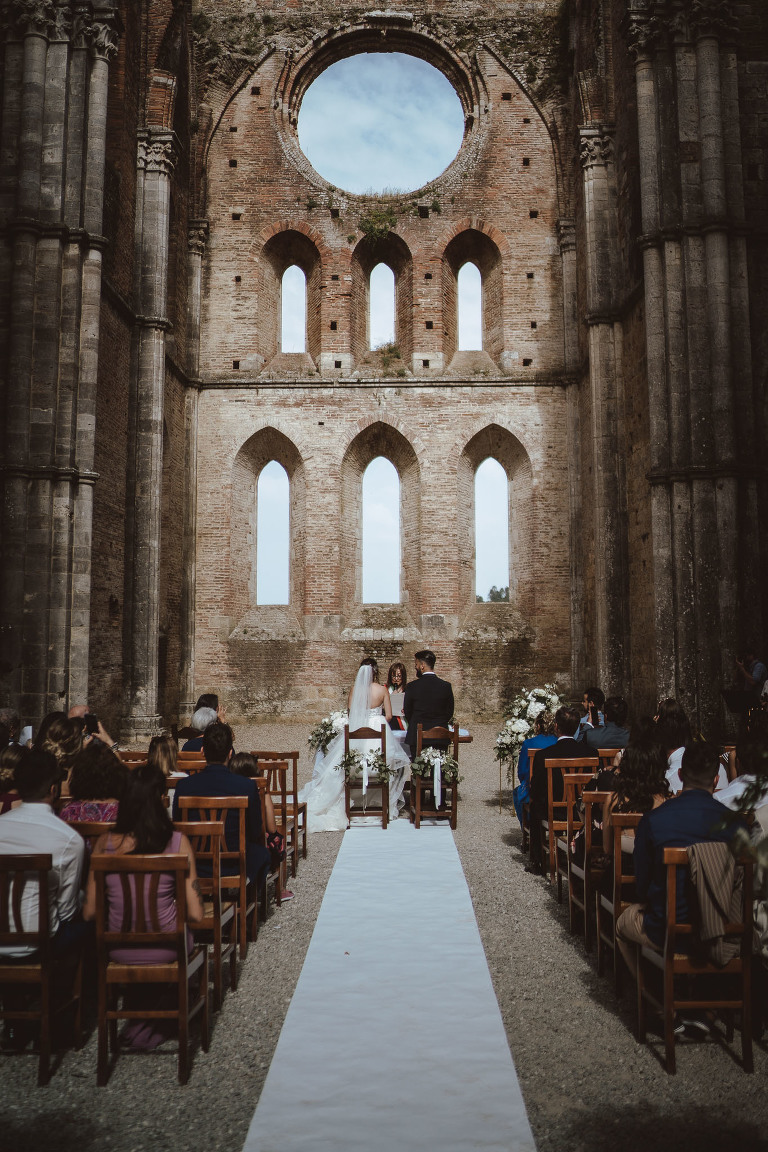 It’s located in Tuscany, Italy and is a breathtakingly beautiful and historic venue for a wedding. The abbey, which dates back to the 13th century, is a stunning example of medieval architecture, and its open-air design, with no roof, makes it the perfect location for an emotional and romantic outdoor ceremony.
