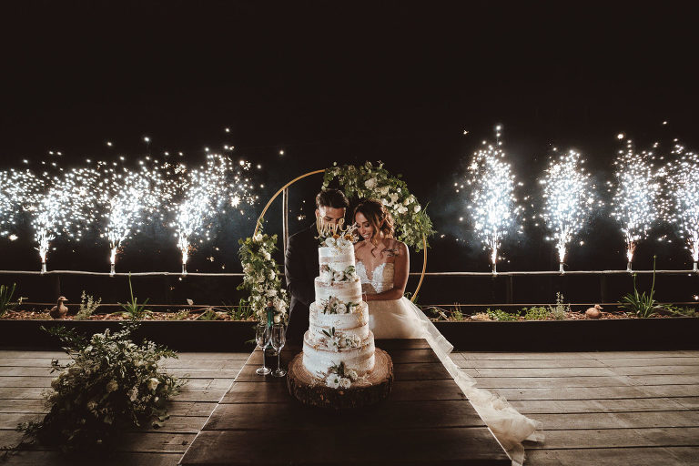 As the ceremony came to a close and the newlyweds walked down the aisle hand in hand, the guests threw rice (as per the italian tradition) to celebrate the happy occasion. The couple then posed for a photoshoot at sunset, taking advantage of the beautiful golden hour light that bathed the area in a warm glow.