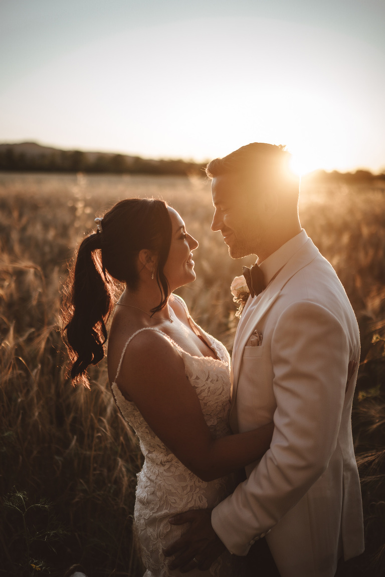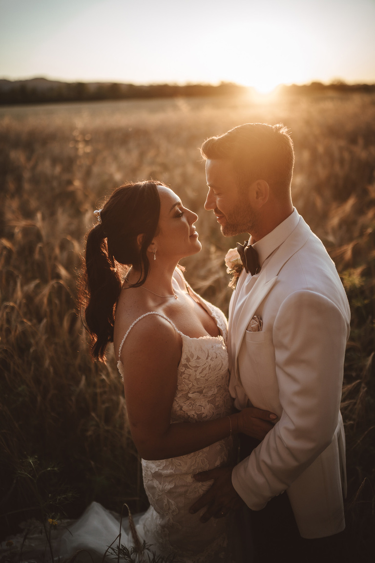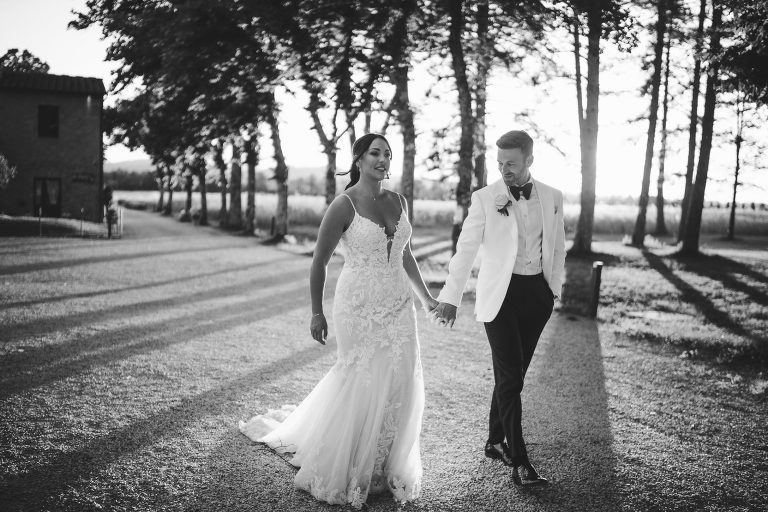 Later in the afternoon, as the sun began its descent, the couple stole away for intimate portraits amidst the golden glow of the Tuscan sunset. These romantic shots, bathed in warm hues, perfectly encapsulated the love and serenity of the newlyweds.