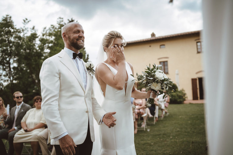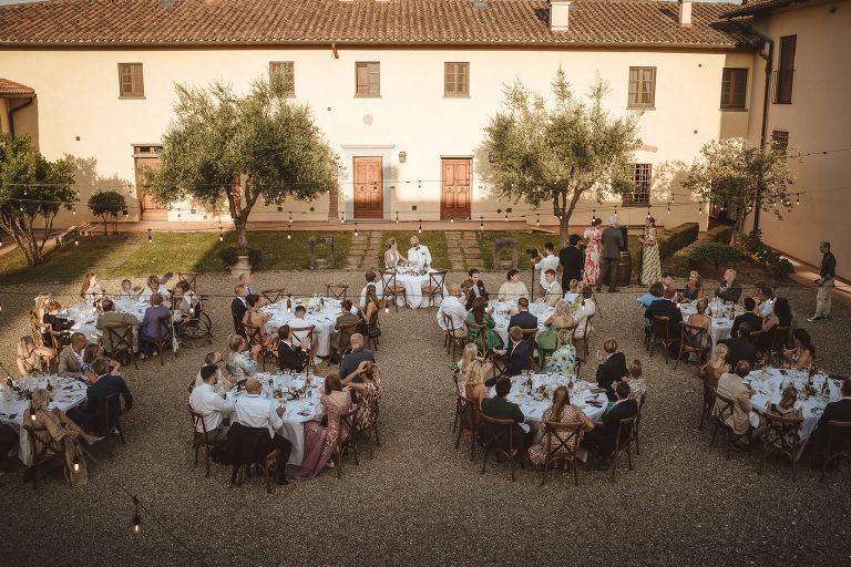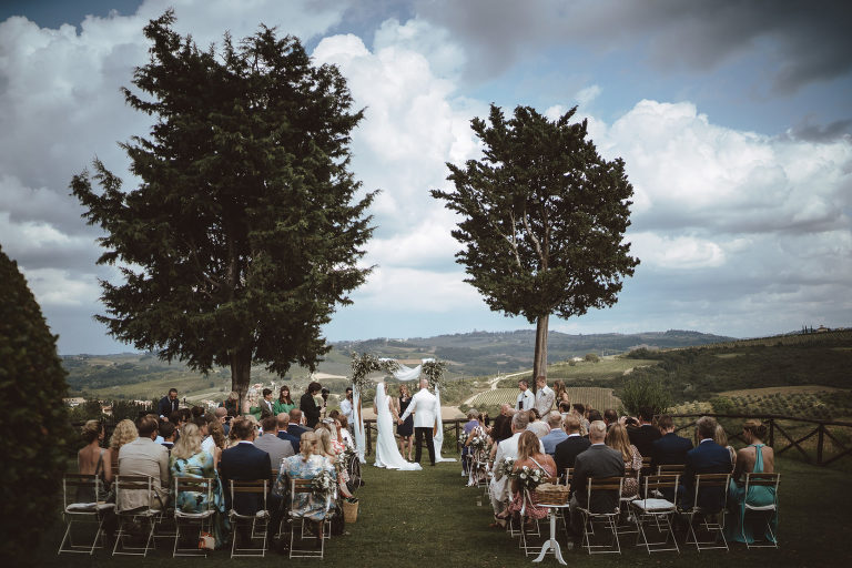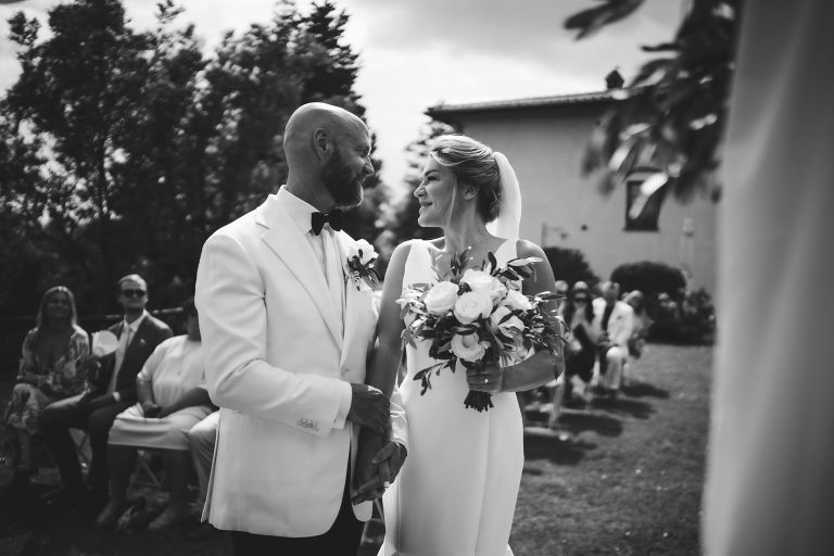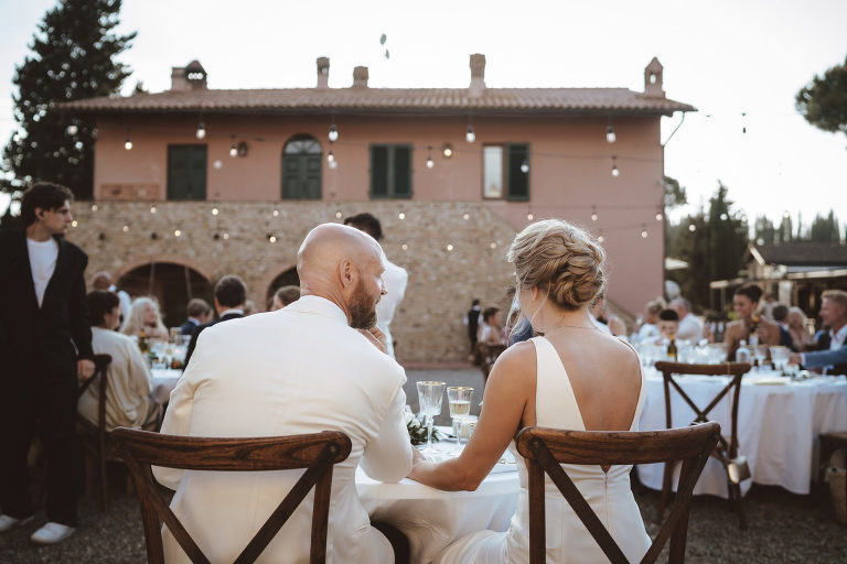 Following the heartfelt ceremony the newlyweds and their guests were treated to breathtaking views of the Chianti hills as they relaxed and enjoyed the delicious cuisine prepared by the talented chefs at Borgo Divino. Against this backdrop of natural beauty friendships were strengthened and memories were made that would last a lifetime.