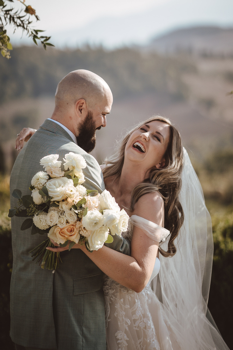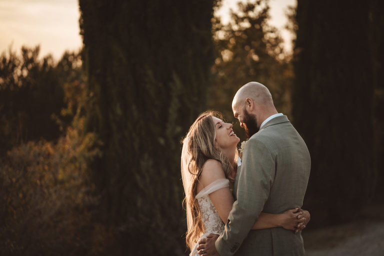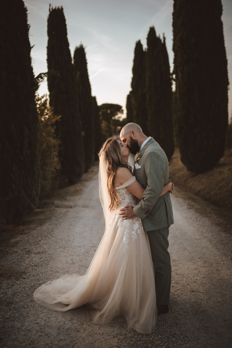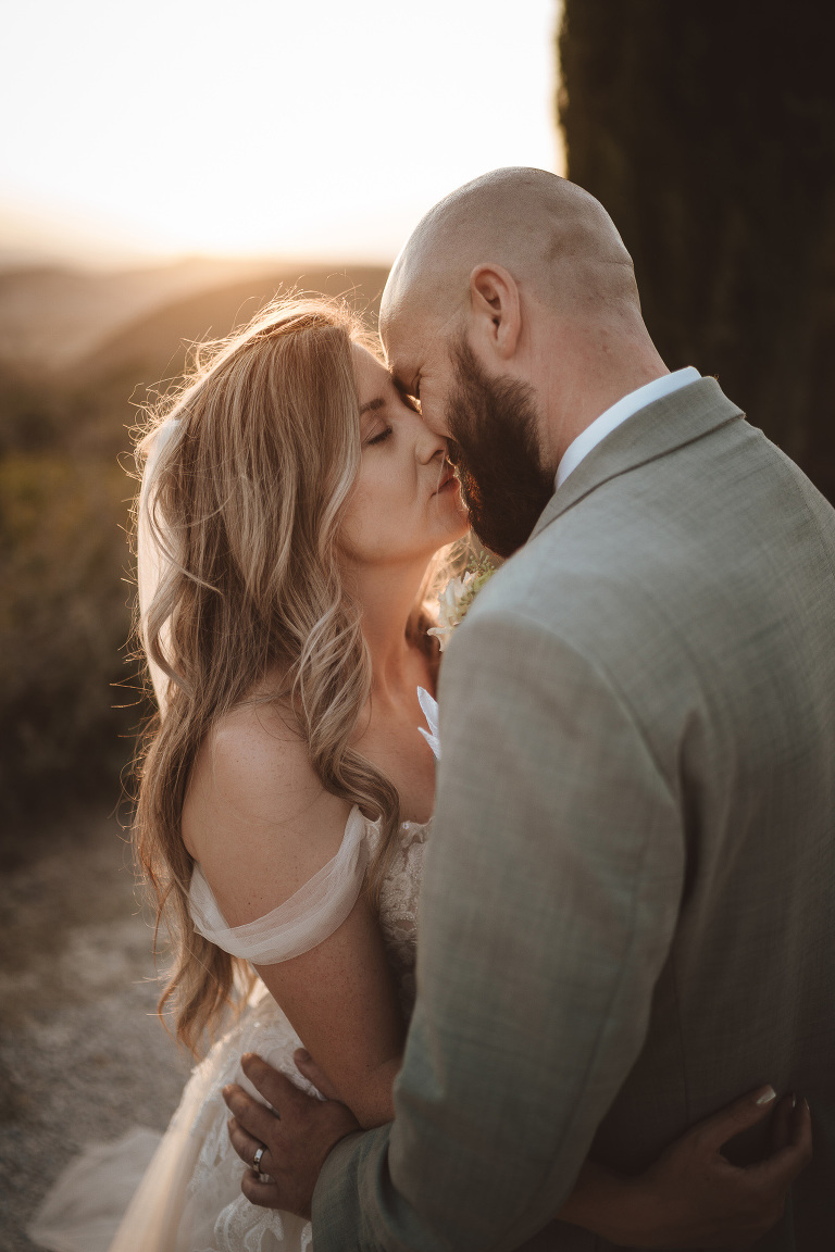 As the sun painted the sky with hues of gold and amber we had a few minutes to shoot some portraits amidst the magic of sunset. With just five minutes on the clock, anticipation mingled with excitement as the couple seized the moment. And indeed, they nailed it, capturing the essence of their love against the breathtaking Tuscan backdrop.
