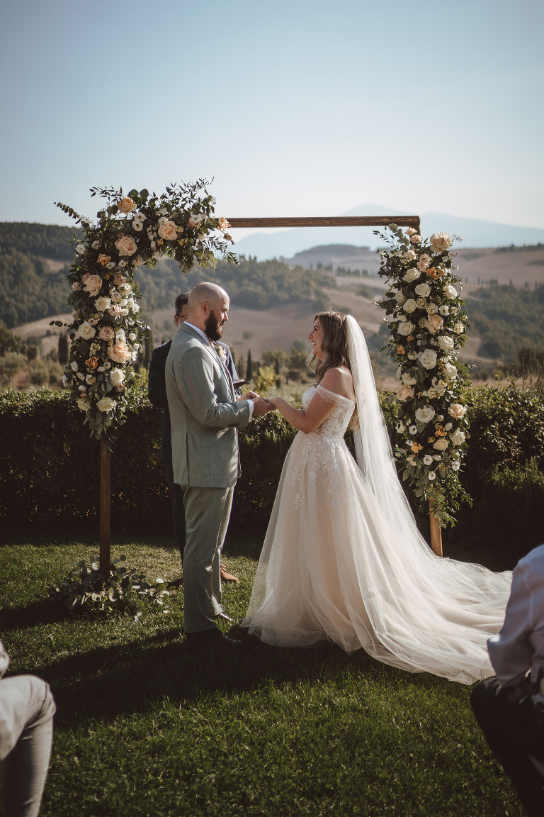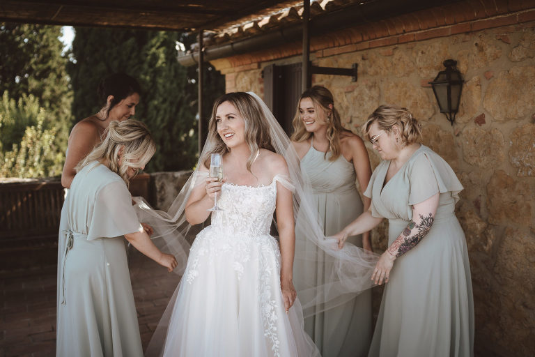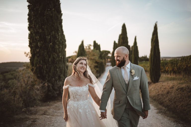 Picture this: laughter dancing in the air, tears of joy glistening in the eyes, and glasses clinking with Tuscan wine against a backdrop of picturesque landscapes. Such was the essence of this wedding where Irish charm intertwined effortlessly with the rustic beauty of Tuscany.
