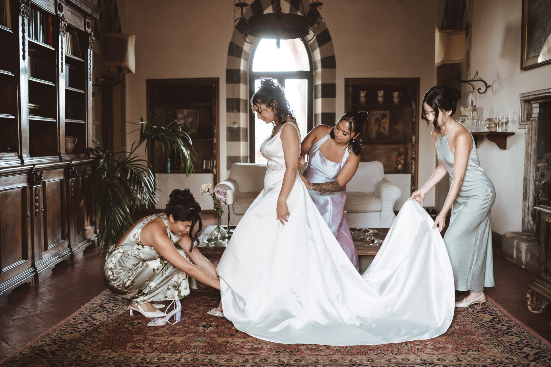 This wedding is a reminder that great photography doesn’t depend solely on perfect light. It depends on atmosphere, connection, and experience. For couples looking for a destination wedding photographer in Tuscany who knows how to work confidently in historic venues like Castello di Badia, even when conditions are challenging, this day is a beautiful example of what’s possible.