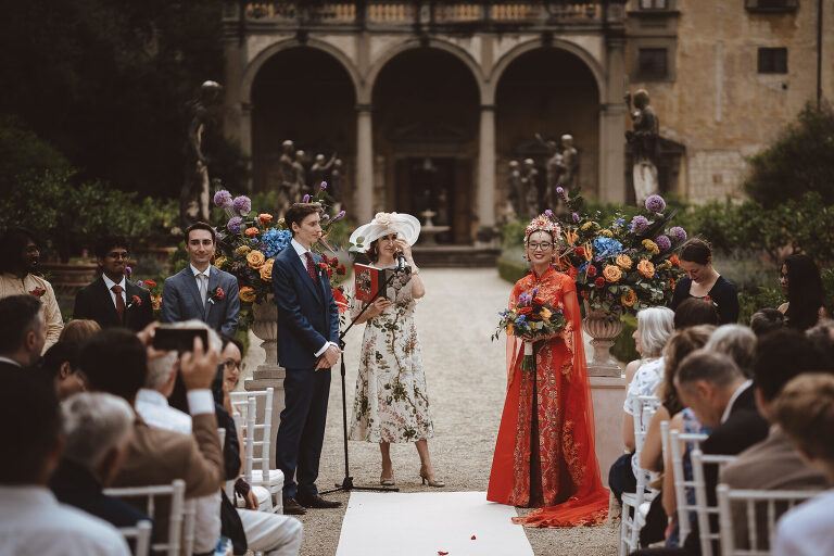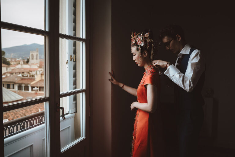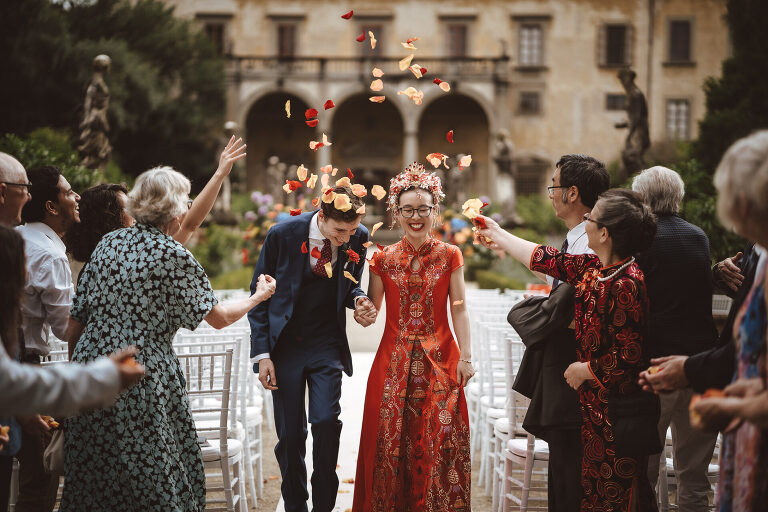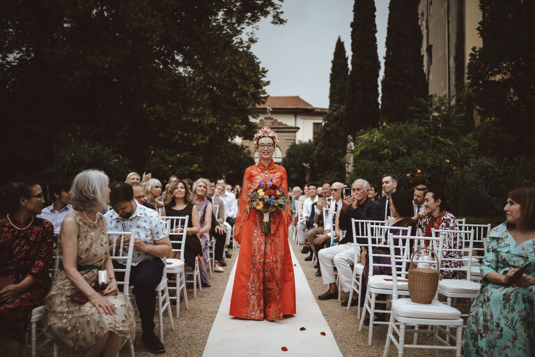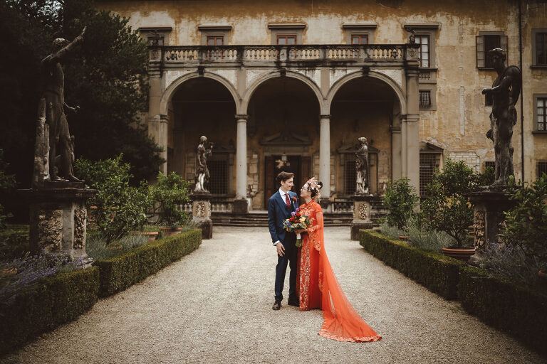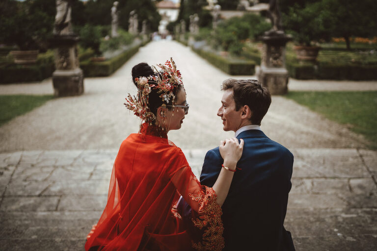 In the heart of Florence, amidst the historic charm of Giardino Corsini, an intimate Italian-Chinese wedding unfolded, blending cultures, emotions, and traditions. The bride, originally from China, and the groom, an Italian native, both residing in the United States, brought together a beautiful mix of family and friends from around the world to celebrate their love story.