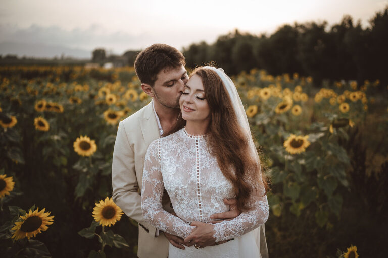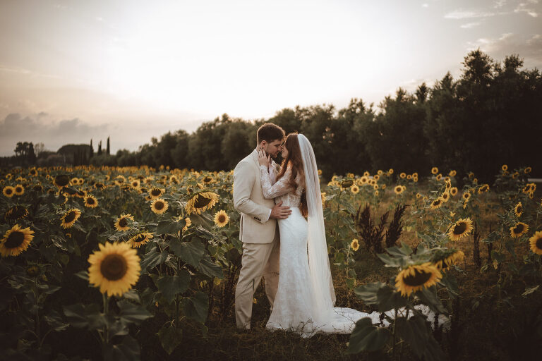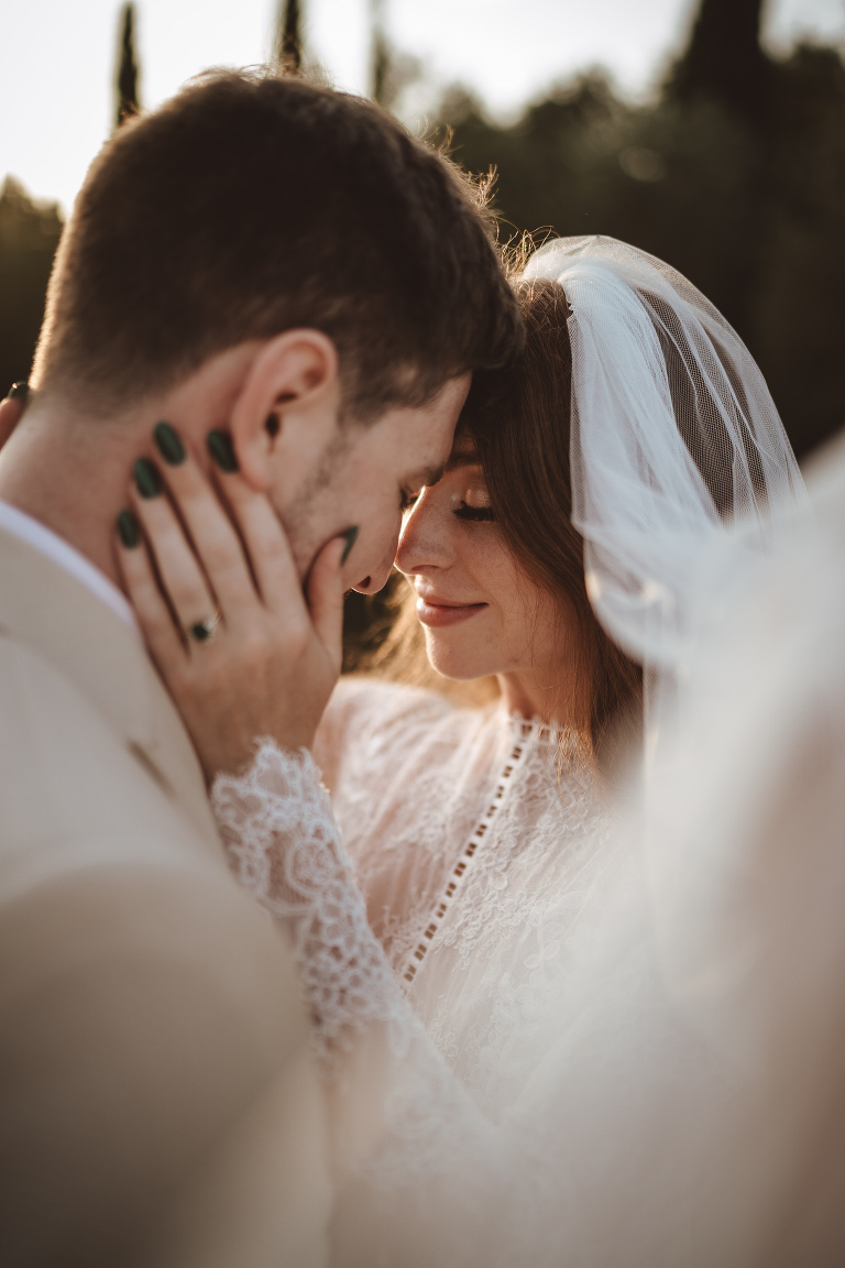 As the day turned to evening, we ventured out for a sunset session that was nothing short of magical. The golden light bathed the couple in a soft, ethereal glow, highlighting their deep connection and the pure joy of the moment. These emotional, candid shots captured the essence of their love story—unfolding in the midst of Tuscany’s timeless beauty.