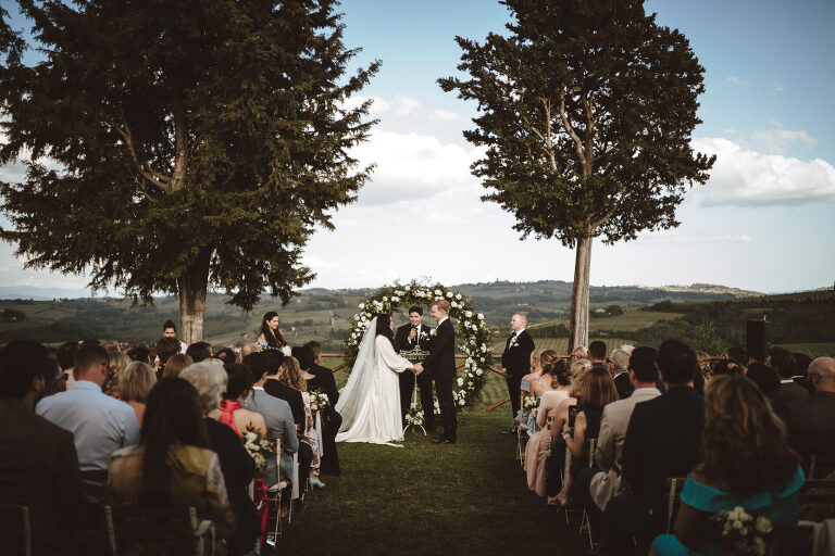 Nestled in the heart of Tuscany, Borgo Divino provided the perfect backdrop for a day filled with love, family, and unforgettable memories. This gorgeous venue, surrounded by rolling hills and vineyards, set the stage for a heartfelt wedding celebration for a lovely couple from the USA and their adorable baby daughter.
