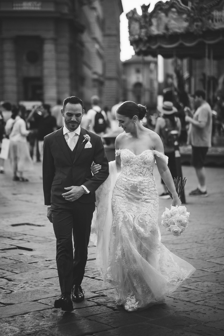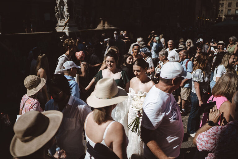 They started their day in my favorite spot in the whole city: Piazza della Signoria. If you’ve ever been there, you’ll know why I love it so much. It’s one of the oldest and most important squares in Florence, surrounded by history, statues, and that magic buzz only this city has. They got ready there, right in the middle of centuries of stories — and it couldn’t have been more perfect.