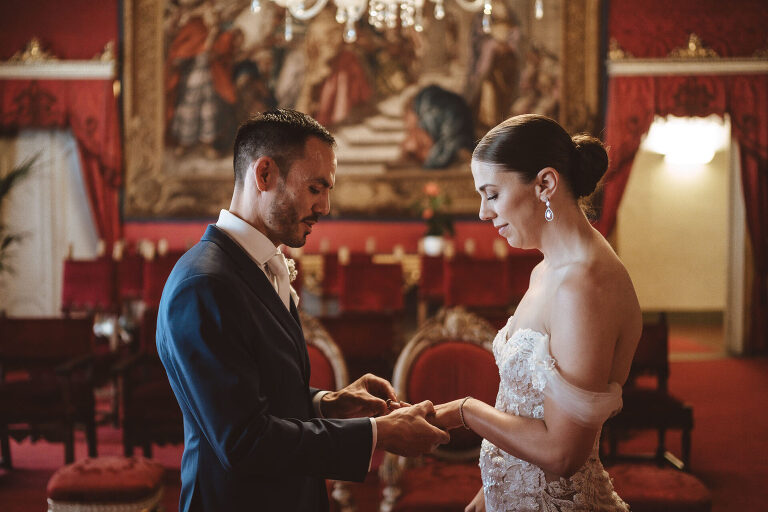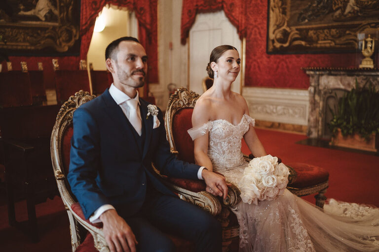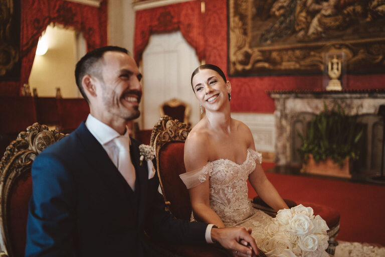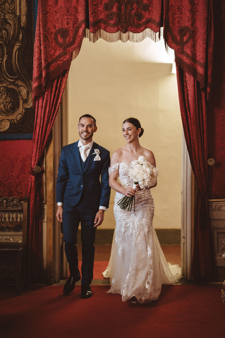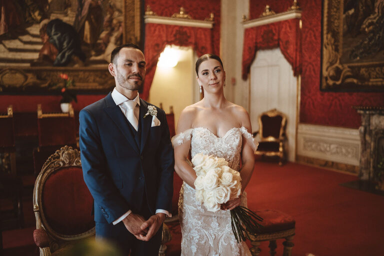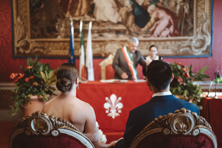 The ceremony took place inside the Sala Rossa, which is basically the heart of Florence’s city hall, tucked inside the magnificent Palazzo Vecchio. I’ve seen a lot of emotional moments, but this one hit different. The atmosphere was so intimate, so full of meaning — you could feel the love bouncing off those red walls.