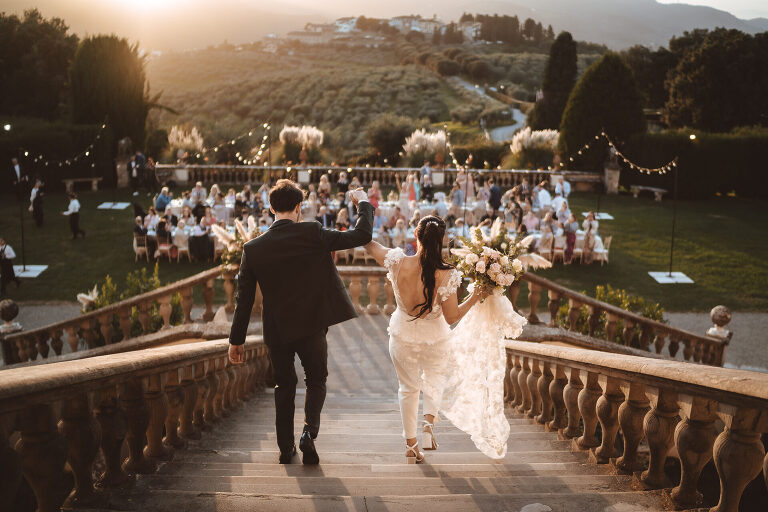 Some weddings are just pure joy from start to finish. This beautiful celebration at Villa di Artimino was exactly that. The couple, flying in from Ireland with their closest friends and family, brought with them an energy that was nothing short of contagious. The mood? Simply amazing. A perfect mix of laughter, love, and that unique Irish charm that lights up every room — or in this case, every Tuscan hill.