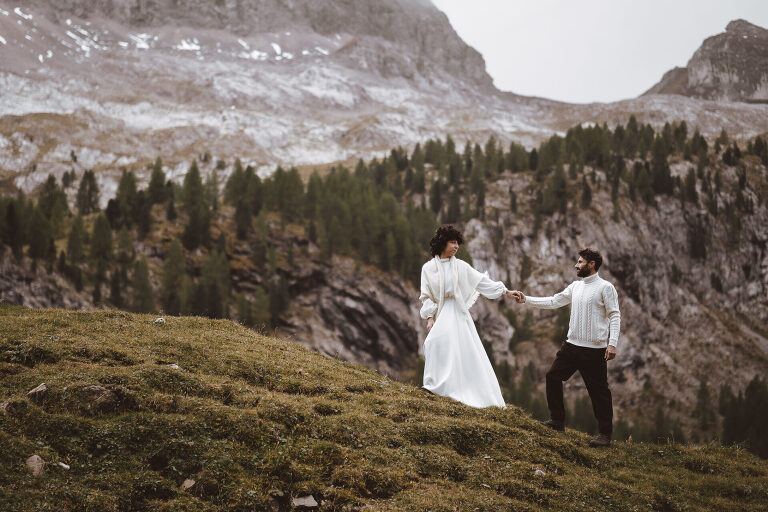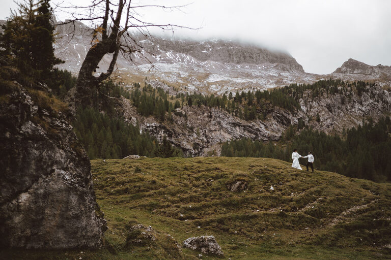 Some weddings are made of grand venues, big celebrations, and endless guest lists. Others… are pure, raw adventures. This elopement on top of the Dolomites was exactly that — just the couple, myself, and my amazing friend and planner, Mirka Pascale. No crowd. No noise. Just the mountains, the wind, and a whole lot of love.