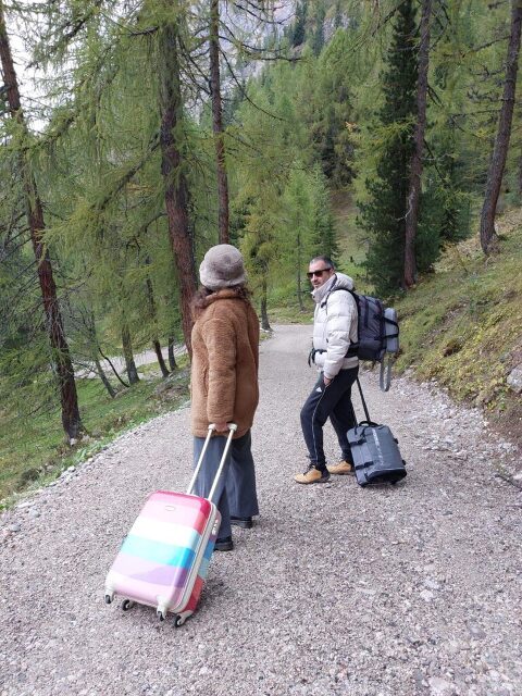 And then… came the adventure part. Our driver never showed up for the descent. So, picture this: four slightly frozen humans, two trolleys, camera gear, backpacks, and the steep mountain path ahead of us. We laughed, we struggled, we took breaks, and somehow it made the whole experience even more epic — and unforgettable.