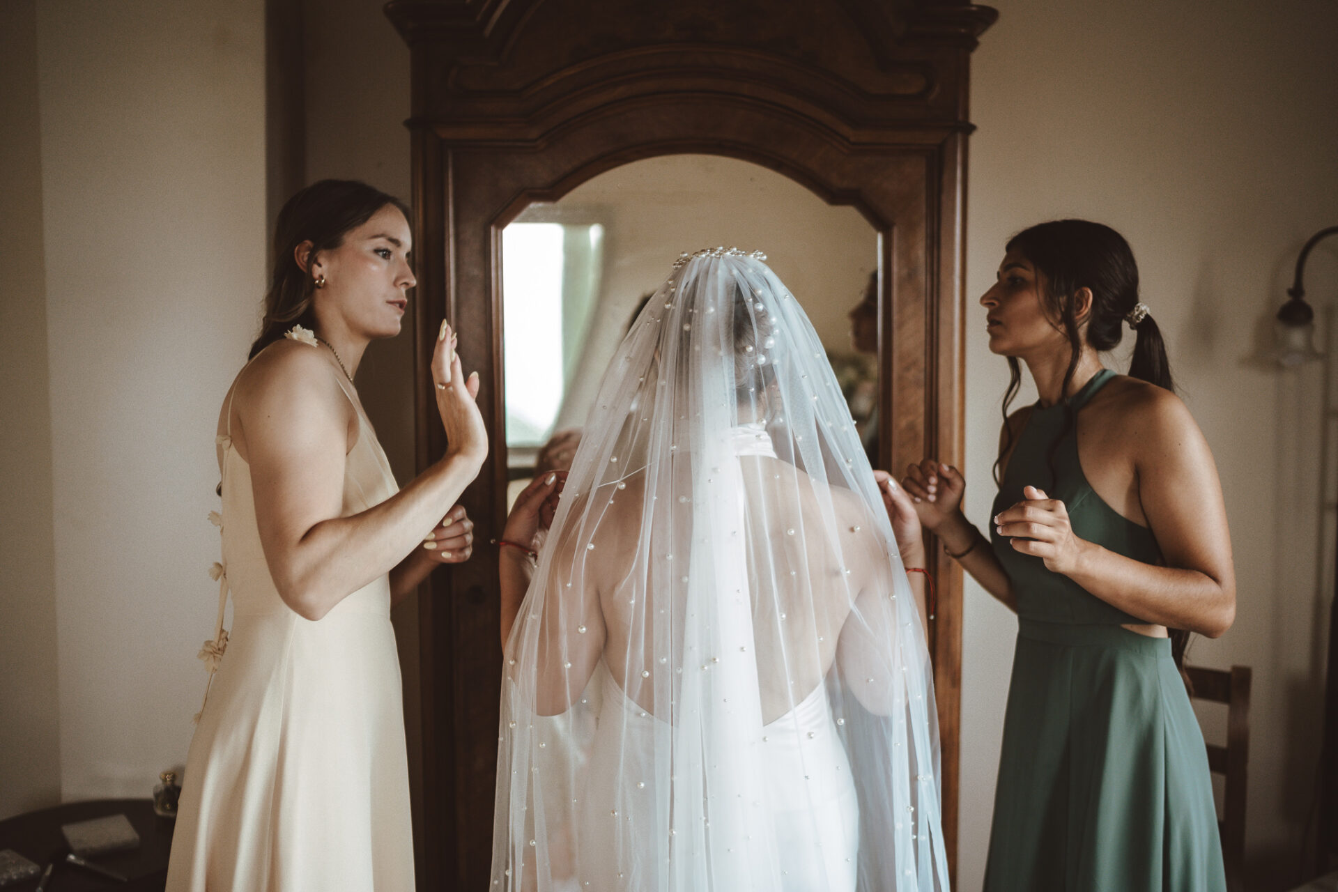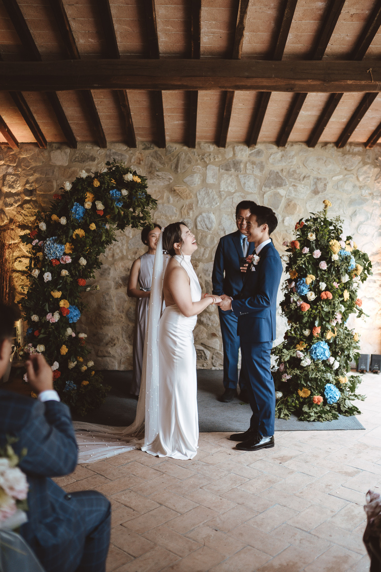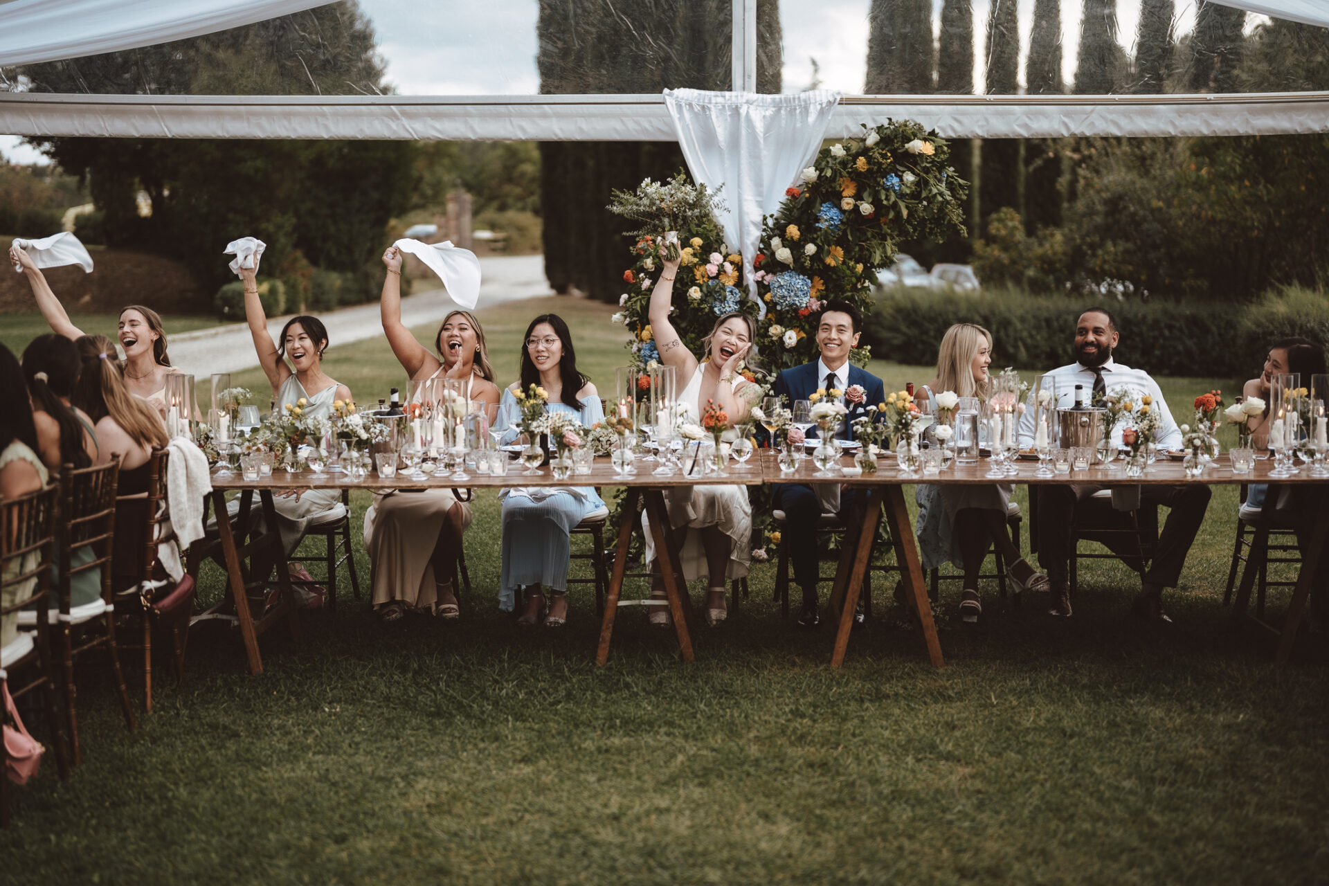 When it was time for the ceremony the rain forced us to move to Plan B. The indoor setup was warm, emotional, and full of energy with friends and family completely present and involved. Still, this couple had chosen Italy and Tuscany for one reason above all: to live the day outdoors, surrounded by nature.