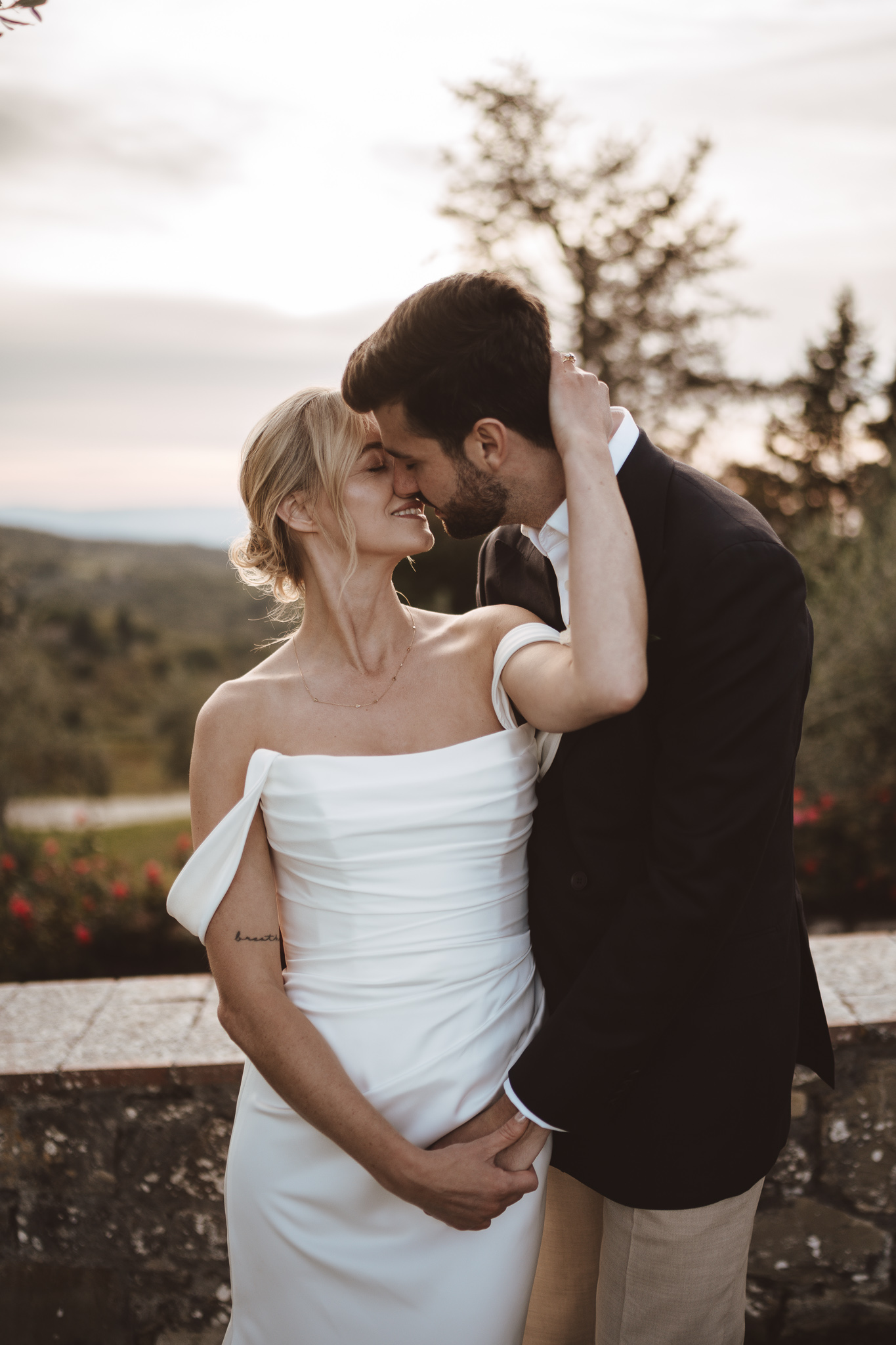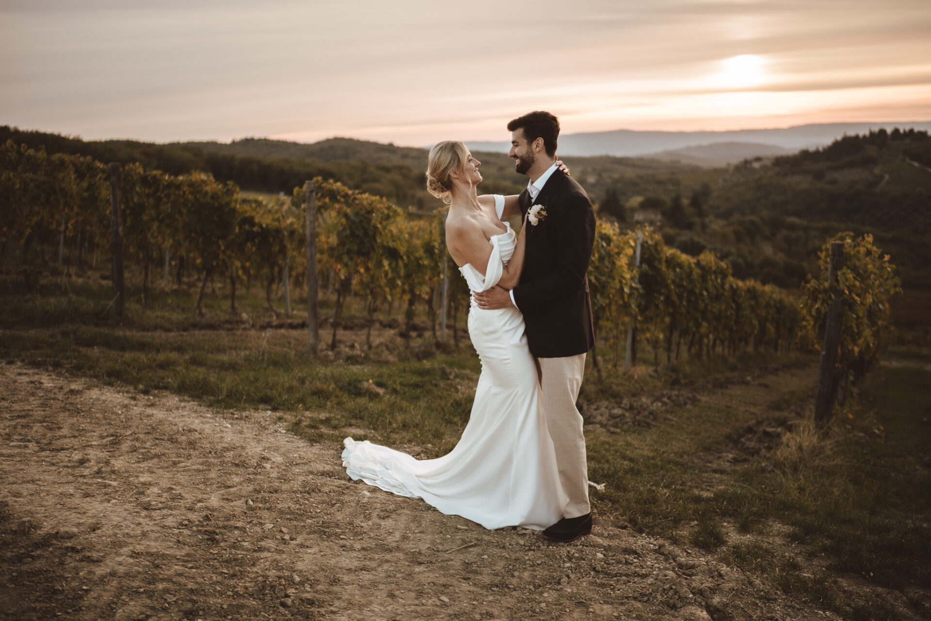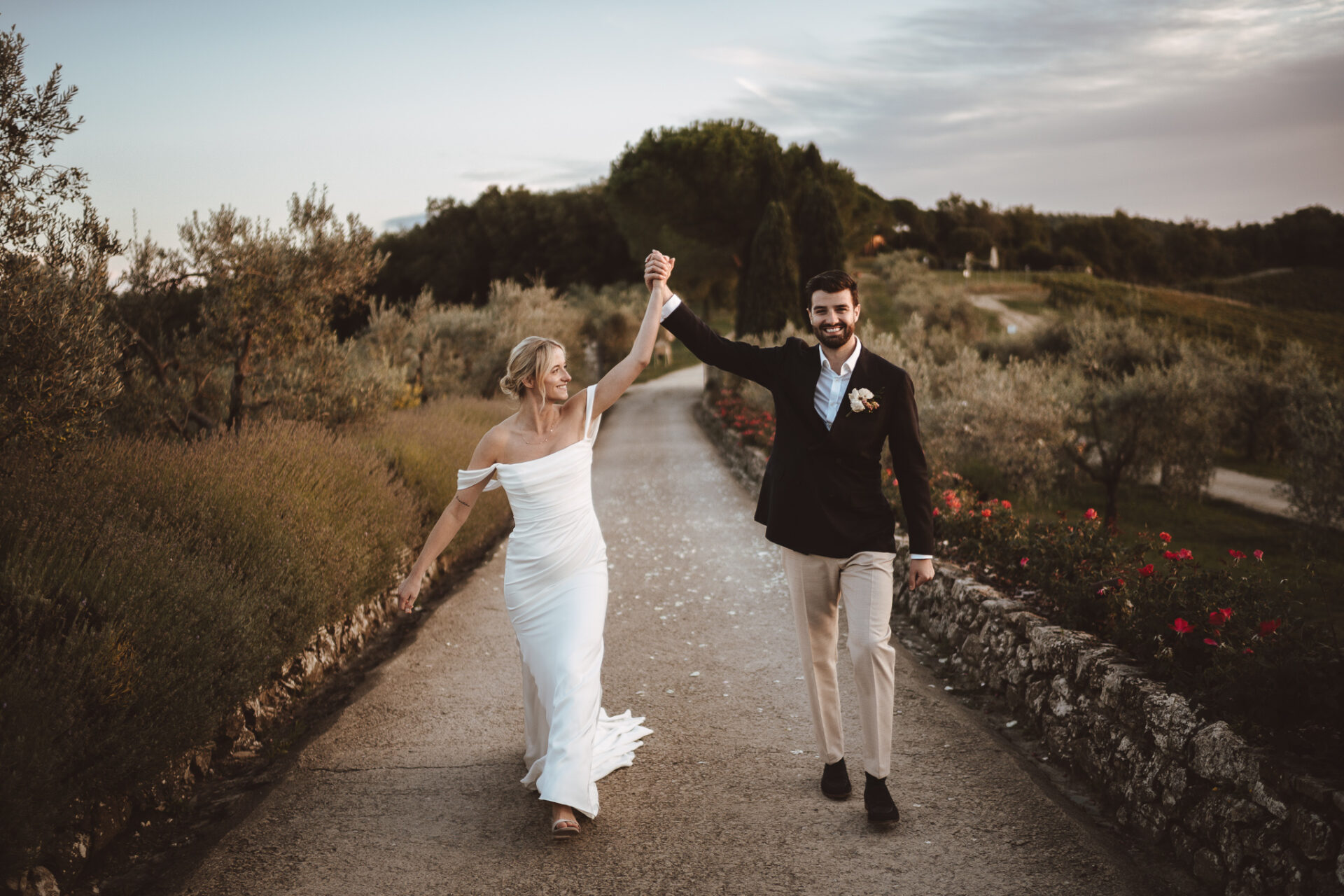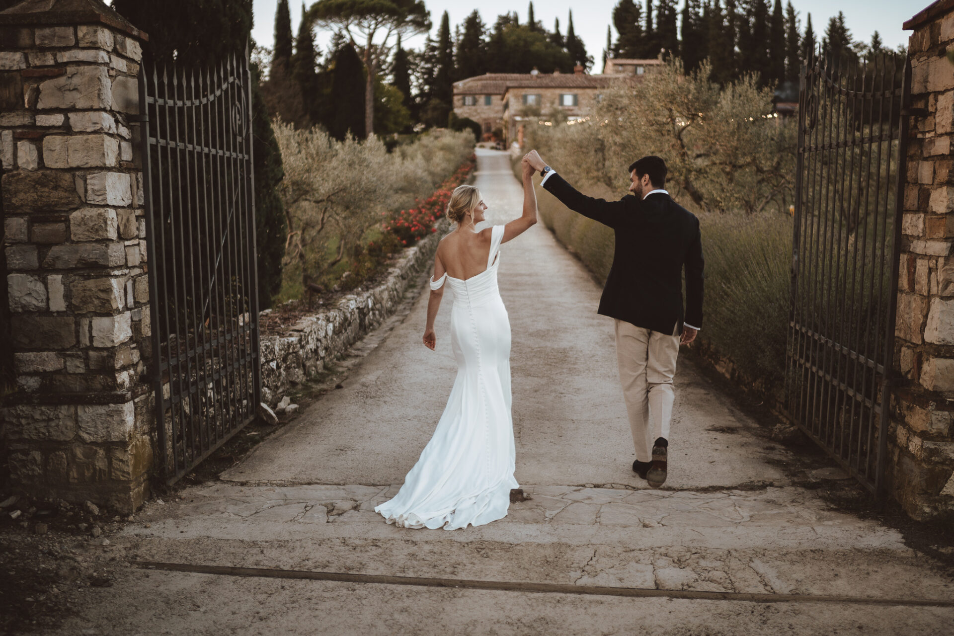 Because I know Le Filigare and the Chianti light very well we moved fast and kept things simple. No stiff posing, no long sessions. Just a short walk, a bit of movement and letting the couple be themselves.