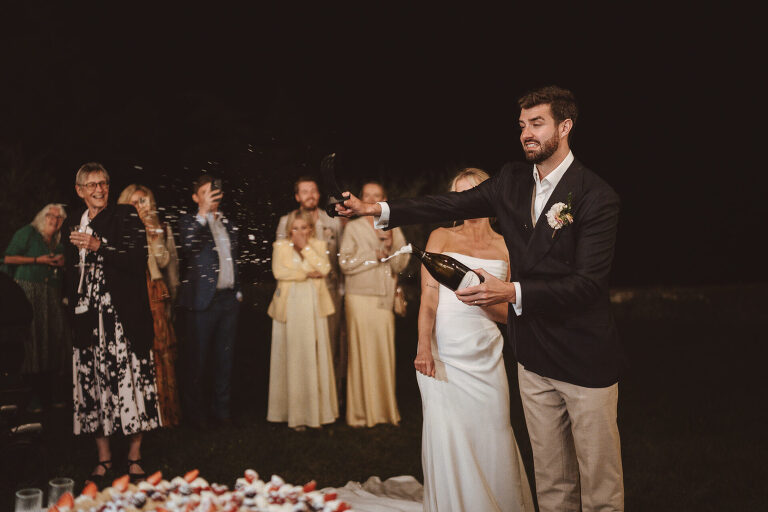 After the ceremony, the celebration moved into a beautiful outdoor dinner. The mood stayed light and joyful all evening. There was plenty of laughter, heartfelt speeches and that warm energy that only happens when guests feel completely at ease.